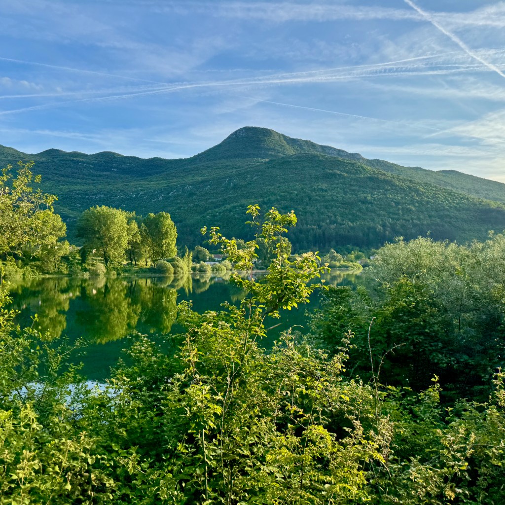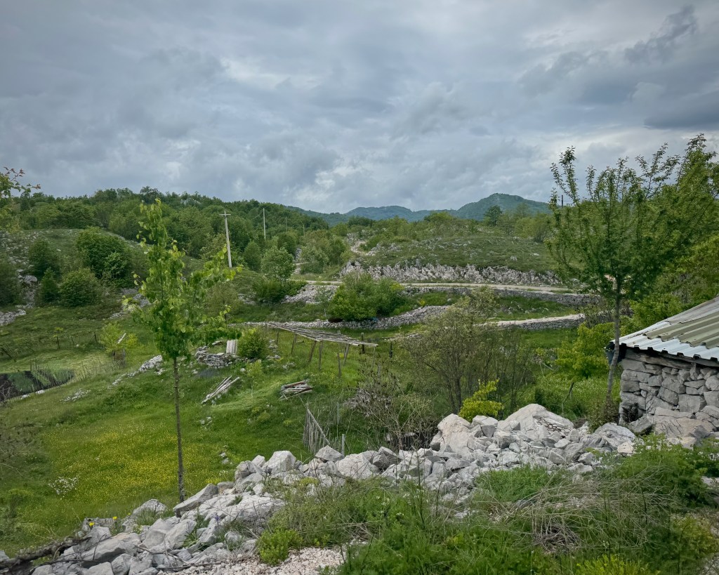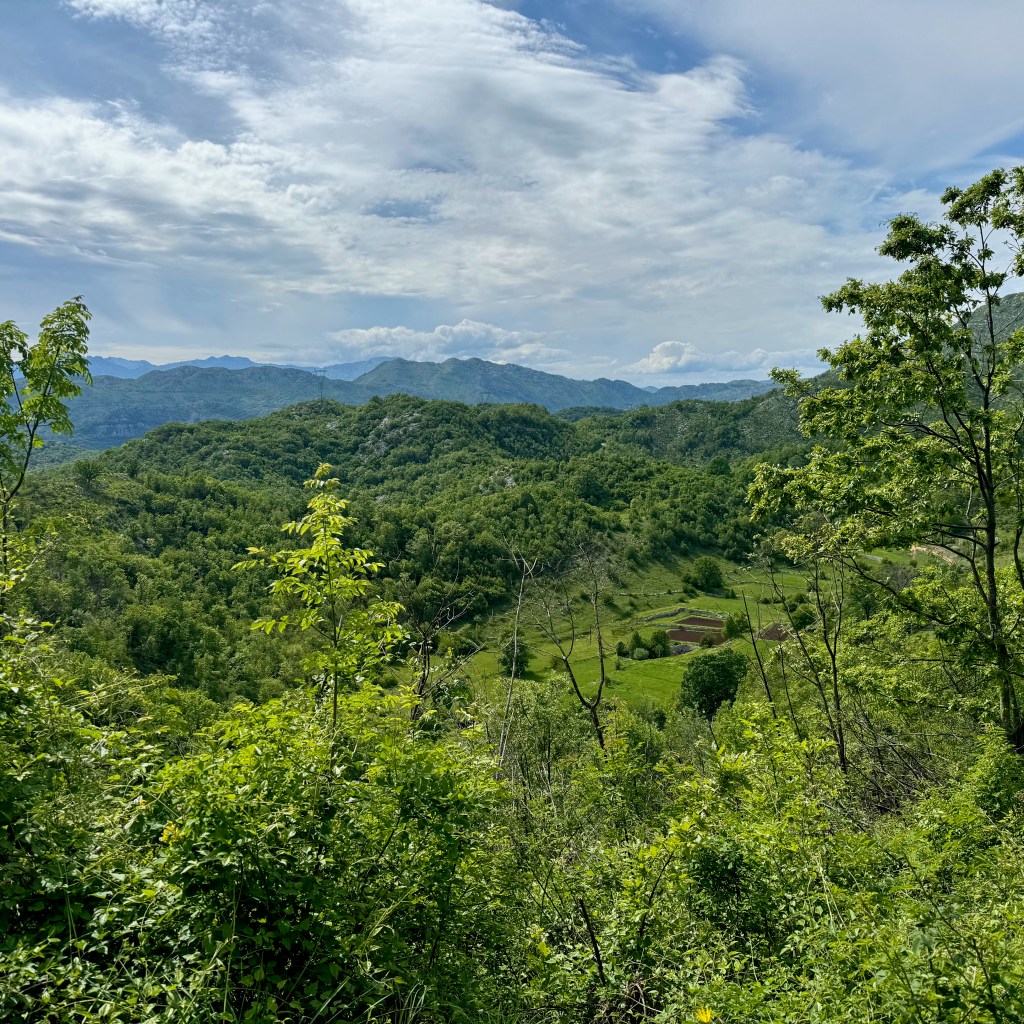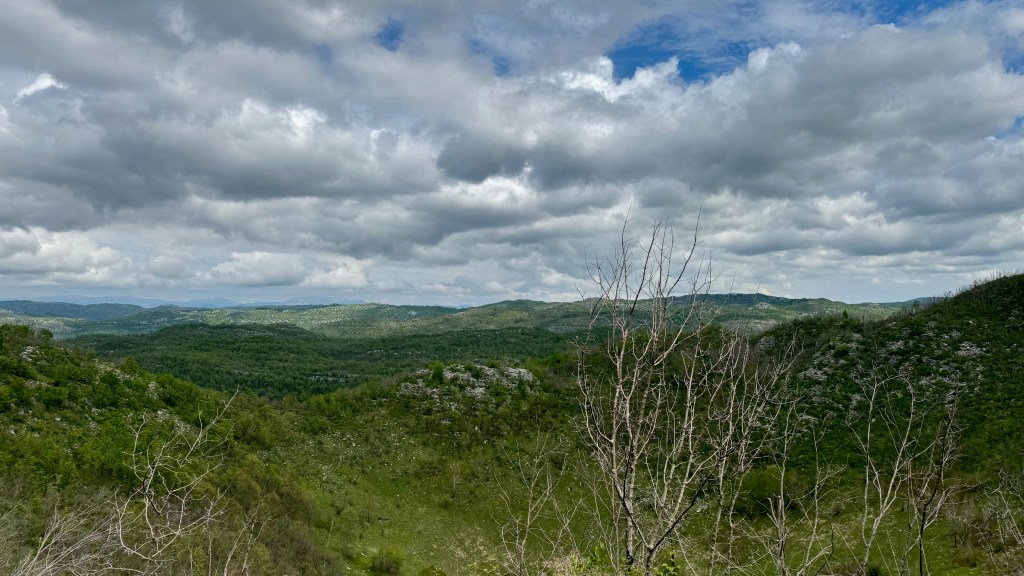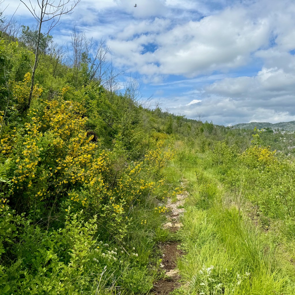 Podgorica is in a valley. We are to cross it and then get up on a rolling plateau. Then we’ll drop down into Bosnia and Herzegovina, where we will follow a defunct railway, now a bike path-cum-tourist development idea. At around Buna, where I plan to finish the day (but–spoiler–won’t), the route climbs up into the mountains again.