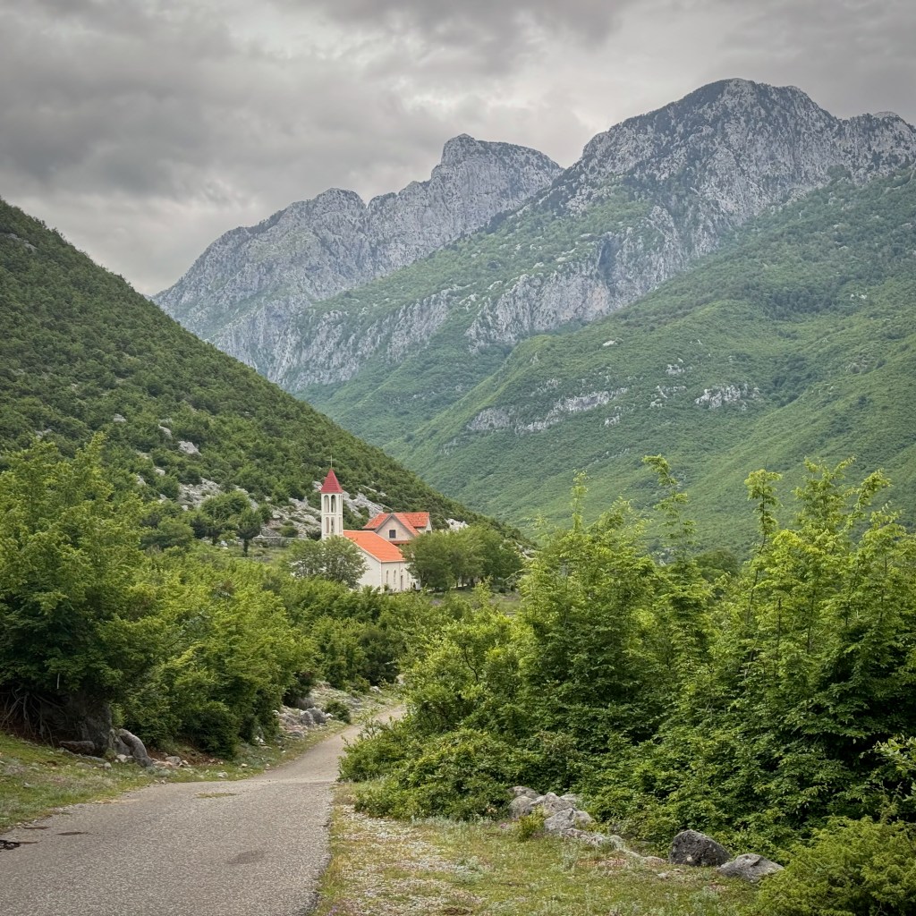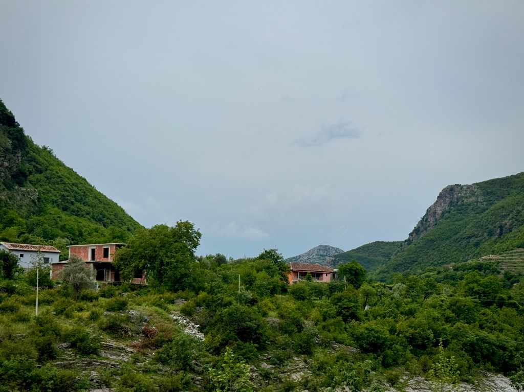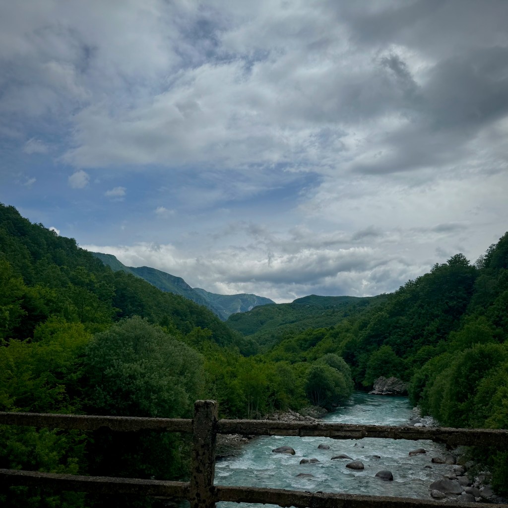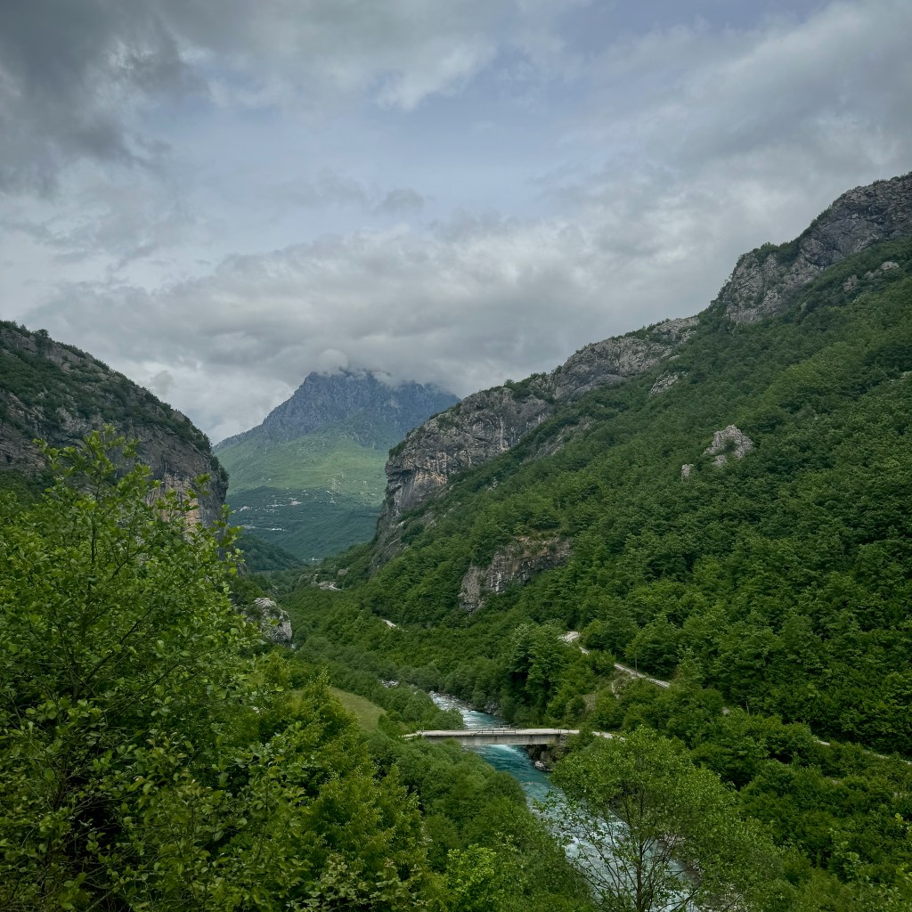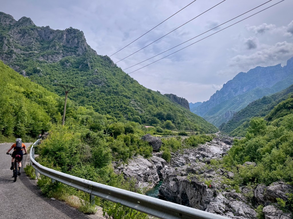The ride out of Shkodër is magnificent. We follow a winding river valley into the high mountains. It’s beautiful and rugged, and after just a few km it feels like we’re well out of the city.